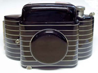 Art Deco and Streamline Moderne were not opposites. Streamline Moderne cameras with a few Deco elements were not uncommon. The prime mover behind American design, Walter Dorwin Teague, embraced streamlining, which allowed him to produce his masterpiece of a camera in the form of the Kodak Bantam Special.